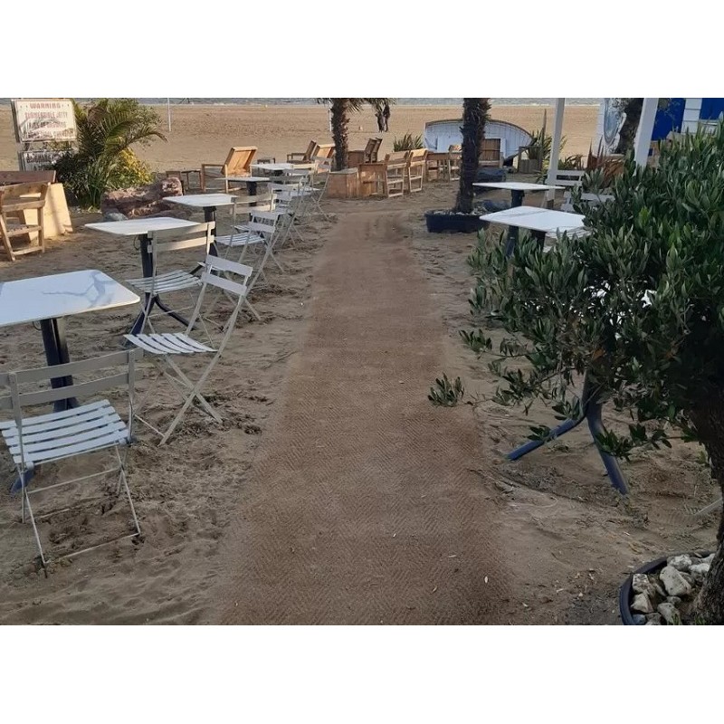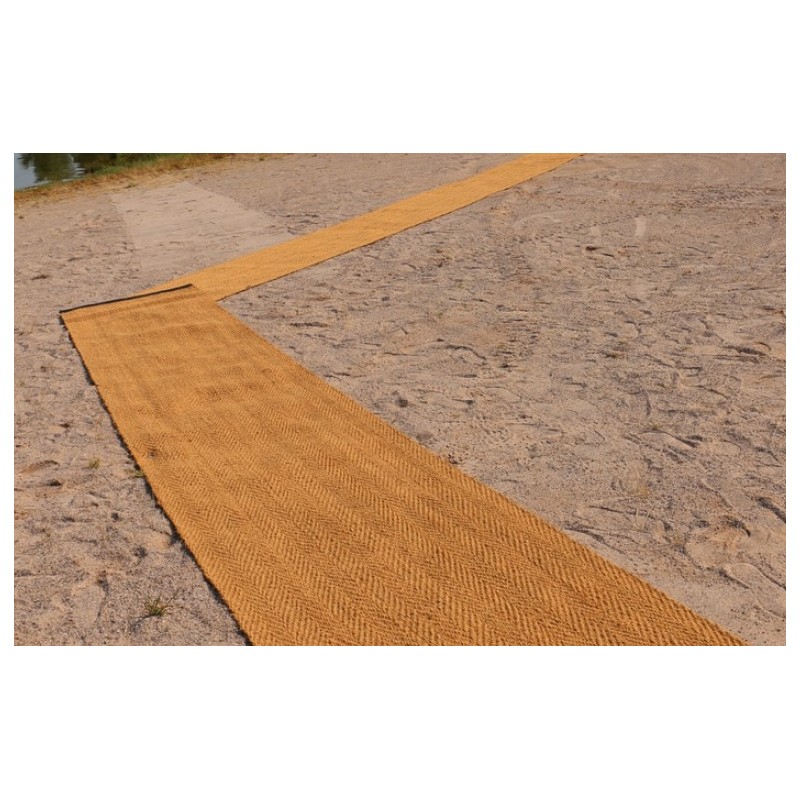 Le tapis d’accès en fibre de coco est un géotextile naturel conçu pour créer facilement des cheminements temporaires en extérieur, notamment sur sable, herbe ou gros galets.